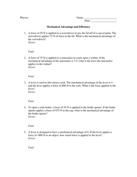 Web Showing 8 Worksheets For Mechanical Advantage And Efficiency.